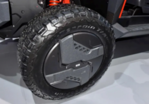 車身側面呈管狀結構,舍棄了傳統車門,改為更適合極限越野的簡潔護桿設計。車輪設計為封閉式,降低風阻,并裝備了37英寸的寬輪胎,深花紋輪胎提供出色的抓地力。車身大量使用碳纖維材料,不僅減輕了重量,還提高了動態性能。