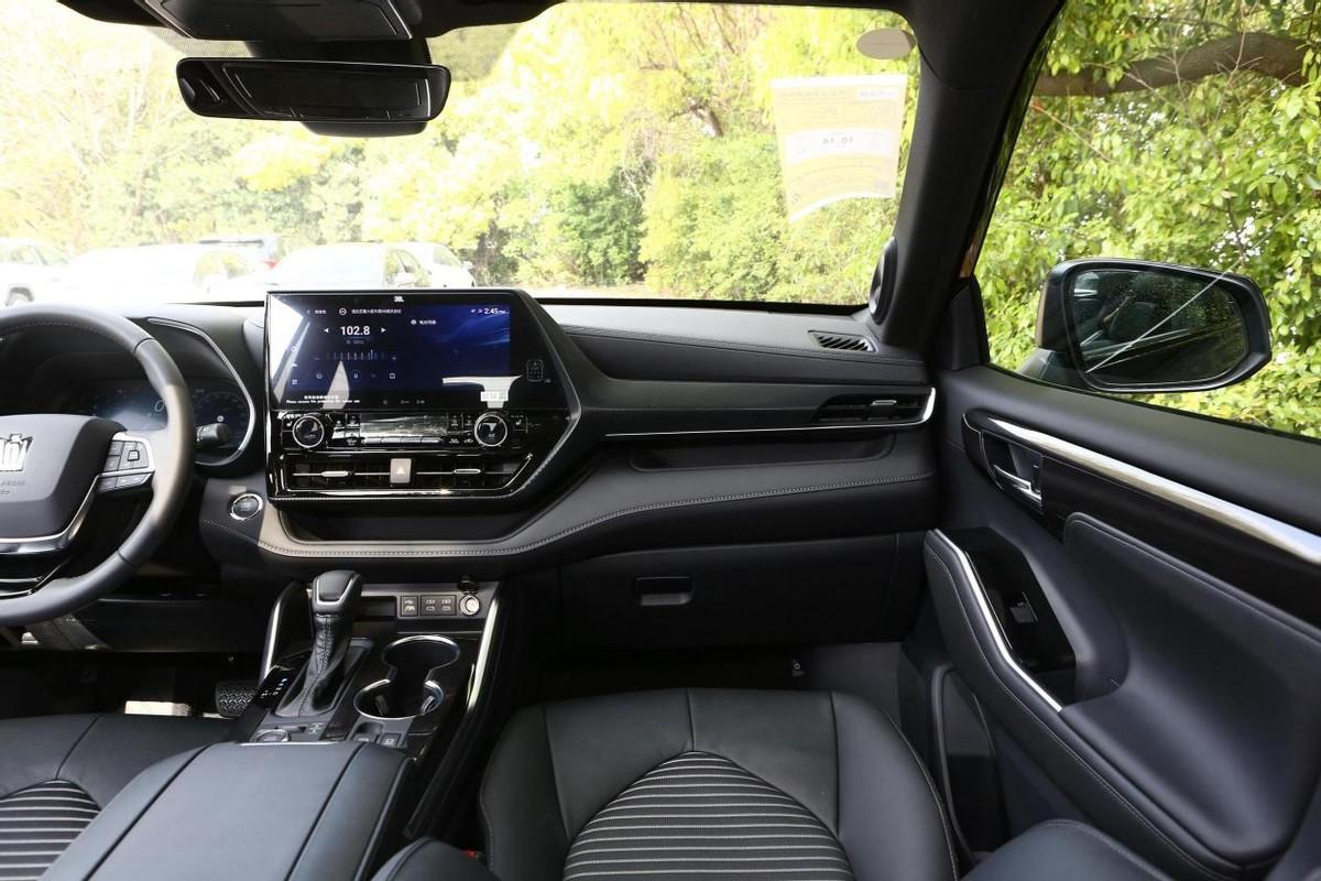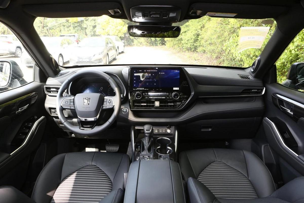 進入到車內,豐田皇冠陸放的內飾還是沿用了豐田經典的設計布局,車內保留有常用功能的實體按鍵,操作起來也很方便。三輻式多功能方向盤的正前方采用了一塊12.3英寸全液晶儀表盤,并且還配備有HUD抬頭顯示系統,而中間的12.3英寸觸摸式中控大屏支持4G網絡、OTA升級、面部識別、語音控制等功能,車機系統使用起來也很流暢。值得一提的是,皇冠陸放的內飾部分采用了大面積軟性材質和皮質包裹,烘托出一定的豪華感。
