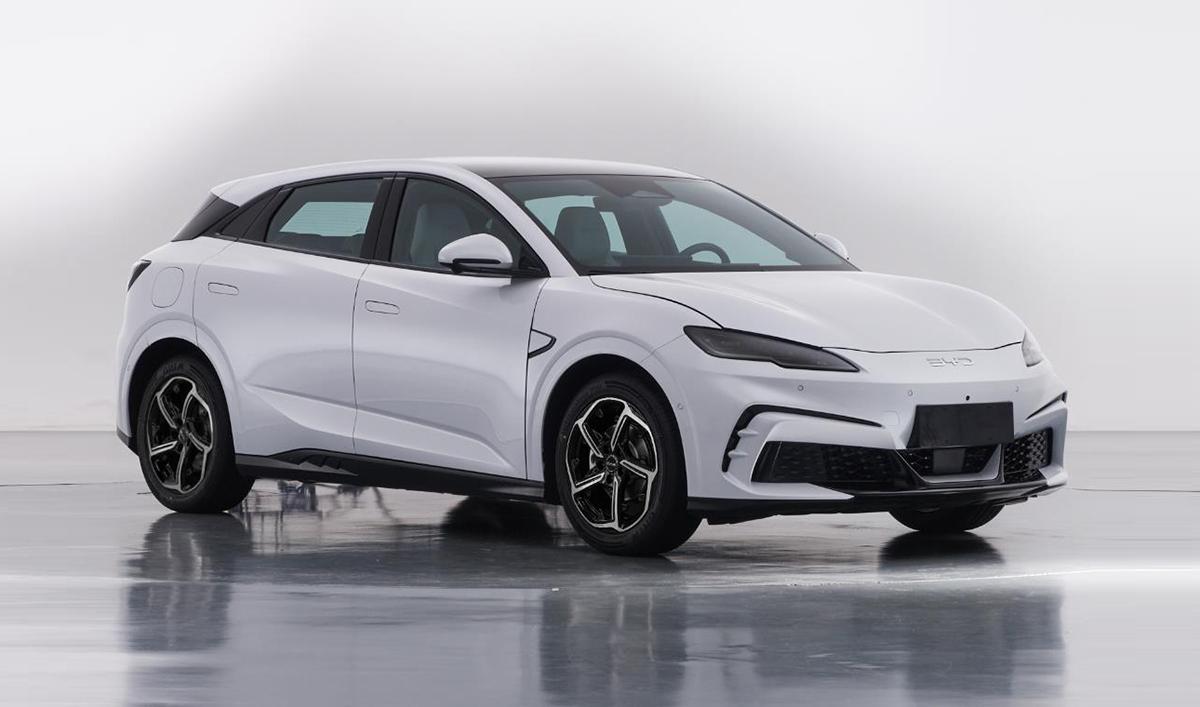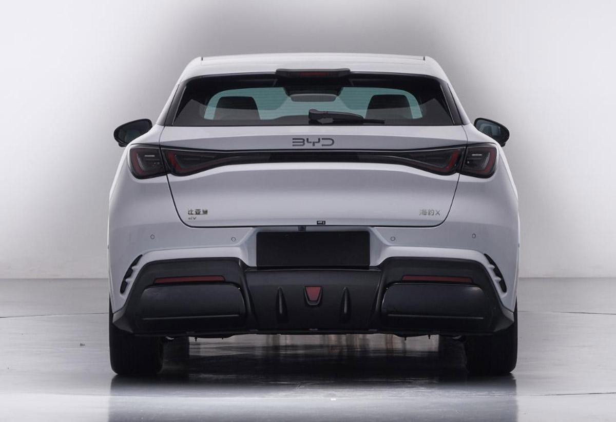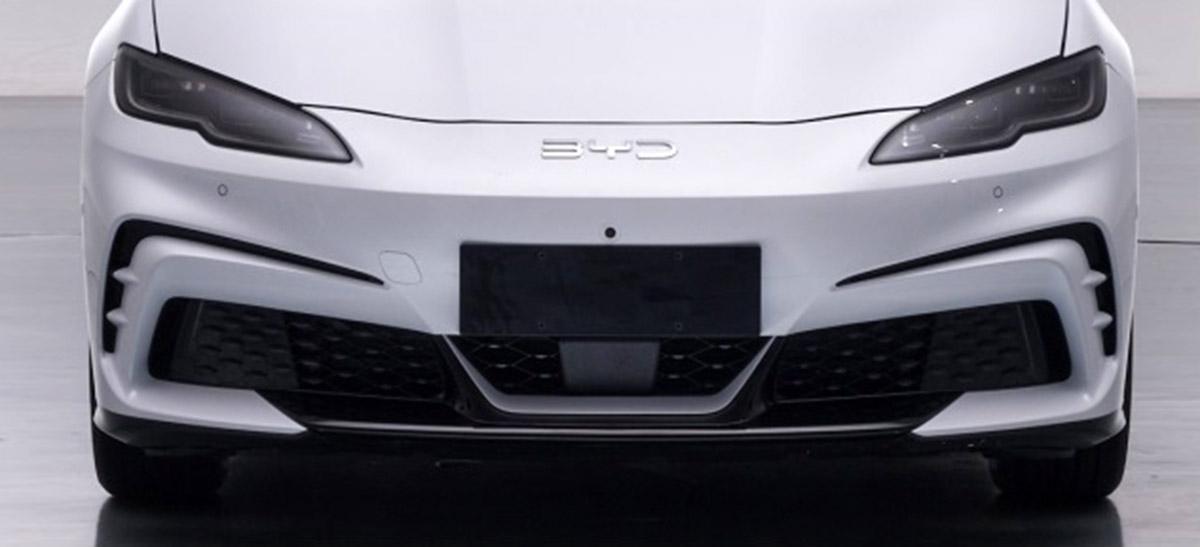 前臉的上半部分使用了封閉式的造型,大燈的造型輪廓和全新的海豹06風格一致,底部是階梯狀的線條,熏黑風格看上去很運動。前杠的造型和概念車有所差別,但也是使用了很突出的擾流造型設計,包括兩側和底部都很搶眼。