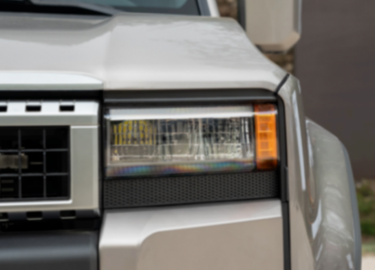全新豐田普拉多第一眼給我的感覺還是比較硬核的,相比老款車型,更有野性,中網(wǎng)的白色TOYOTA字母LOGO也是比較醒目,格柵周邊還增加了銀色邊框作為點(diǎn)綴,大燈組采用矩陣式設(shè)計(jì),大燈邊上的小黃燈也是比較復(fù)古,符合自身的定位,整體設(shè)計(jì),符合一個(gè)硬派SUV該有的味道。