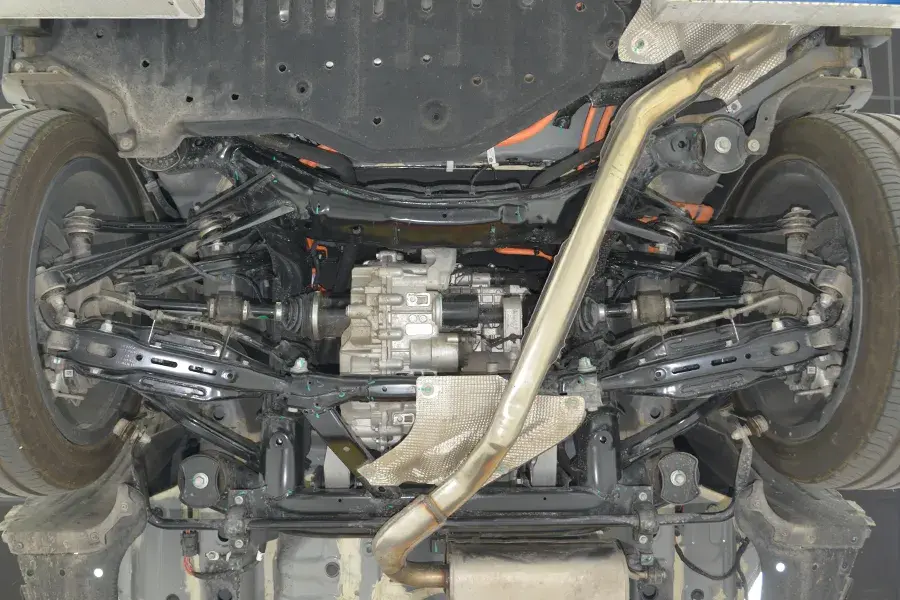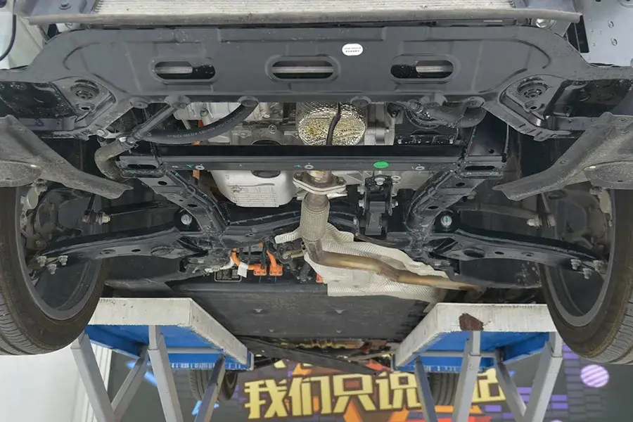 這輛車零跑C10的底盤并不像其他零跑車型那樣,采用鋁合金材質。盡管整備質量達到了2.4噸,但底盤并沒有用更輕的鋁合金材質,都是沖壓鋼板,在一定程度上,降低了車輛的制造成本。難怪這么大的車,還是增程式,起步價能降到13萬左右。