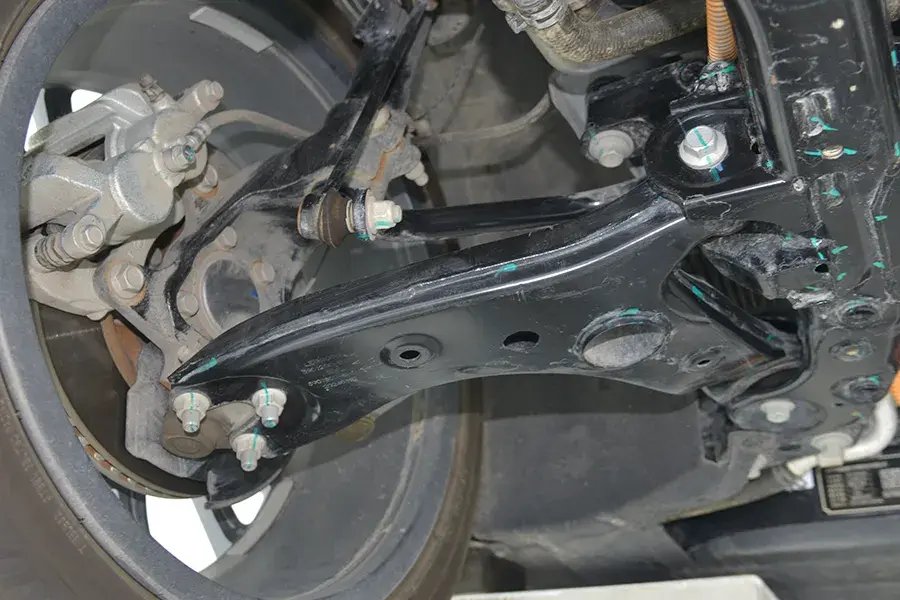 后副車架也是標準的全框式結構,鋼板沖壓焊接而成。