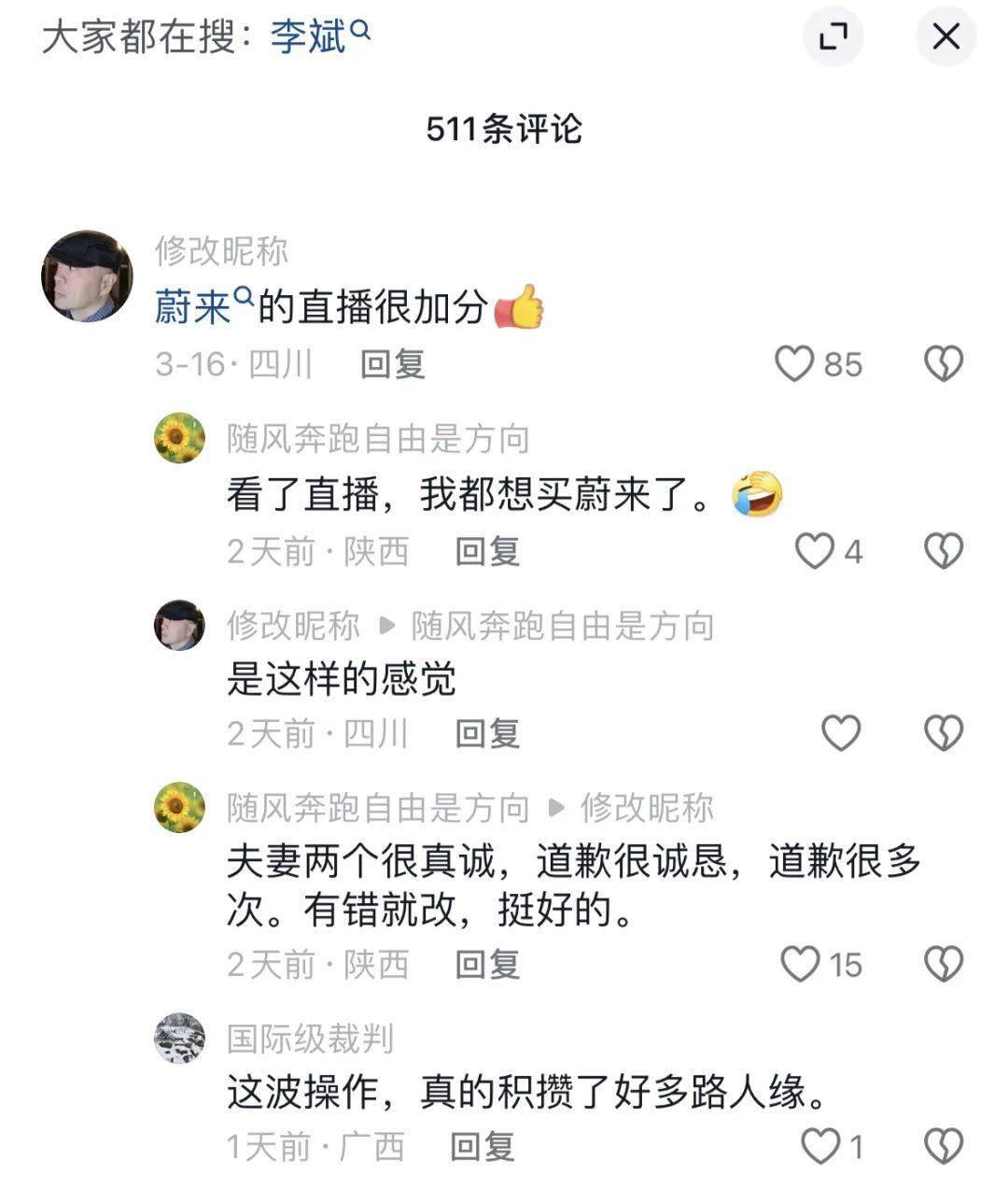 好在,近兩年斌哥明顯低調(diào)了不少,而且通過個(gè)人直播的方式,成功向外界輸出自己“真誠”“親民”的形象,給蔚來拉回來不少好感。