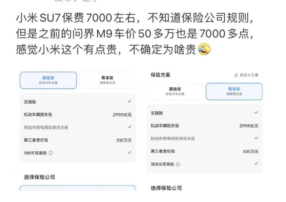 買車就得上保險(xiǎn),除了交強(qiáng)險(xiǎn),還有商業(yè)險(xiǎn),雜七雜八的N多險(xiǎn)種算下來可是一筆不小的開支,這點(diǎn)有車的朋友肯定都知道。而且大家似乎有一種“刻板印象”,就是豪車的保費(fèi)一定很高,而價(jià)格較低的車子,保費(fèi)一定就不高。然而,隨著新能源車的大行其道,事情早已發(fā)生變化了。最近就有個(gè)熱搜,說的是20多萬元的小米SU7,保費(fèi)居然比瑪莎拉蒂還高!