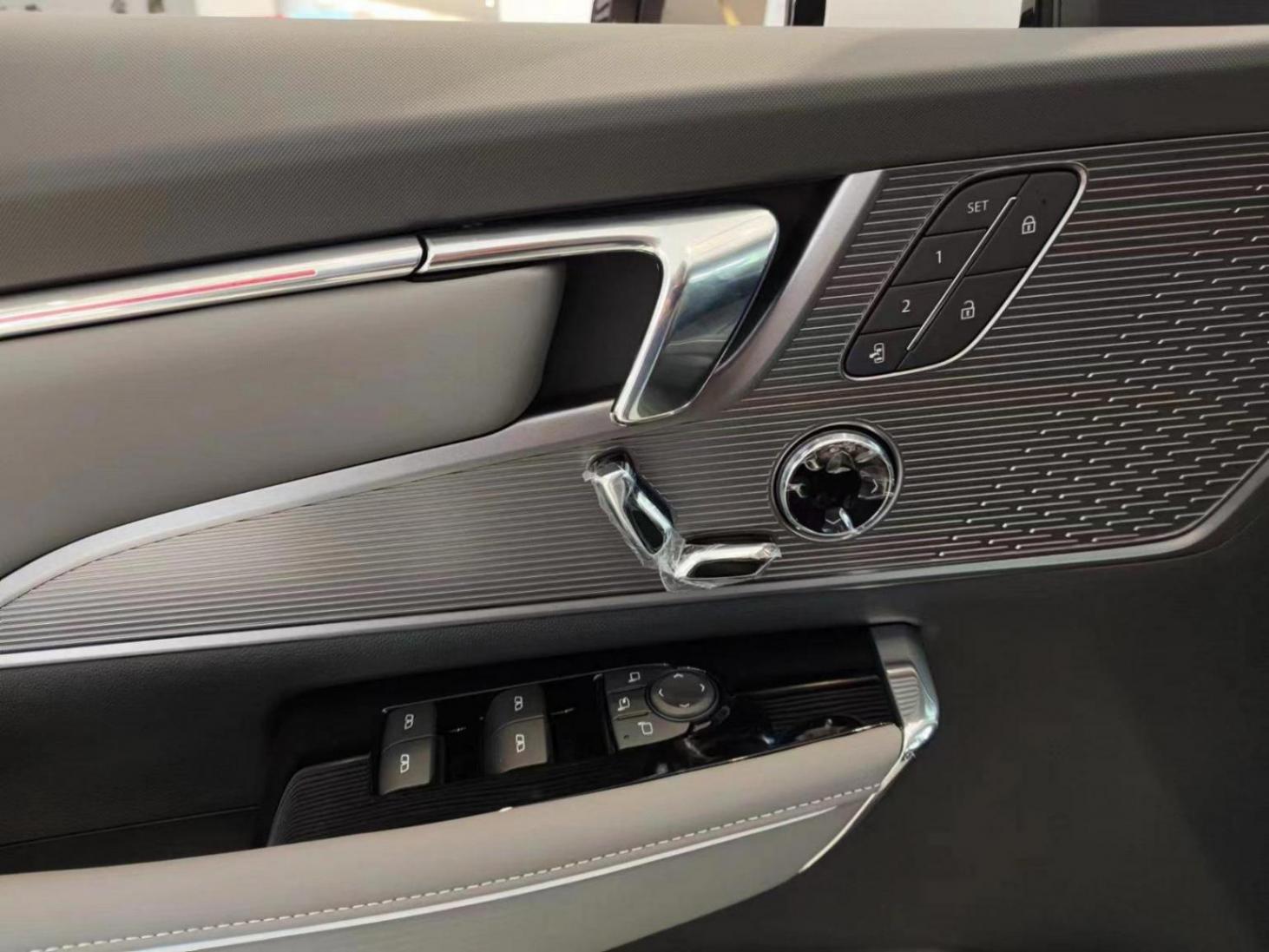 配置方面,以展廳中的這臺2023款 臻享標準續航版為例,擁有20英寸輪轂、L2級駕駛輔助系統、6個安全氣囊、胎壓顯示、前/后駐車雷達、車側盲區影像、360度全景影像、自動泊車入位、自動駐車、可開啟全景天窗、方向盤加熱、電動后尾門、NFC鑰匙、手機無線充電、真皮座椅、前排座椅電動調節/加熱/通風、30英寸6K曲面屏、CarPlay、高通8155芯片、9個揚聲器、121色氛圍燈、雨量感應式雨刷、前排多層隔音玻璃等配置。