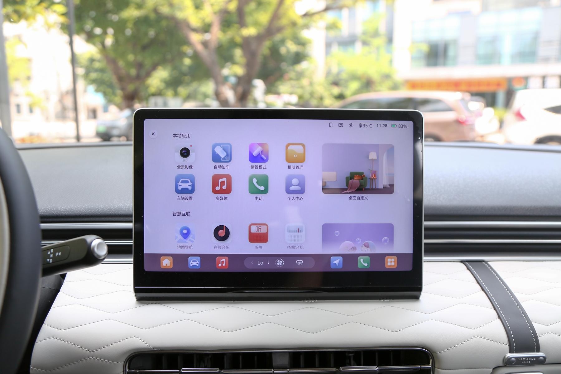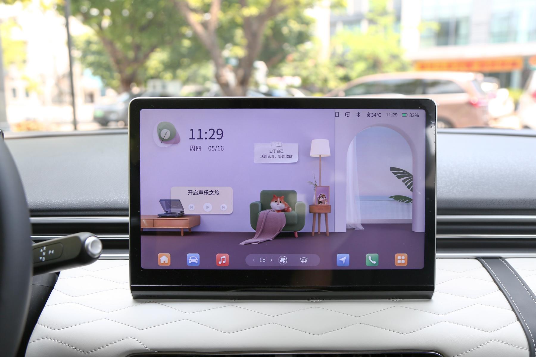 車內的12.8英寸中控大屏界面設計簡潔直觀,具有濃厚的科技感,仿佛一款高性能的安卓平板。內置在線導航、在線音樂等實用功能,讓駕駛者的行車體驗更加便捷。此外,系統還提供了五種情景模式,包括“快速降溫”、“一鍵溫暖”、“停車模式”、“呵護寶寶”和“雨雪模式”,以滿足不同駕駛場景下的需求。語音控制功能同樣表現出色,識別度和反應速度都令人滿意,使得駕駛者即使在沒有物理按鍵的情況下也能輕松操作車內設備。