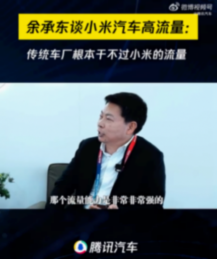 余承東談小米汽車,傳統車企流量根本干不過!