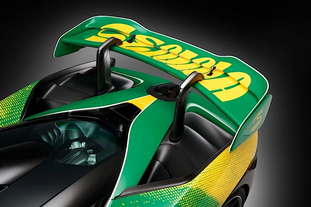 作為特別版車型,邁凱倫決定在前端和后翼的側面均加入了塞納經典的雙S標志,而Senna這個單詞還非常顯眼地出現在了尾翼上方。