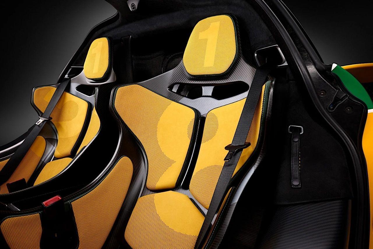 邁凱倫還對內飾部分進行了調整,使用了黃色的Alcantara內飾,為了與外觀進行呼應在座椅上還加入了綠色打孔設計。