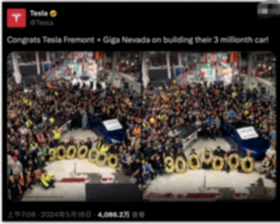 特斯拉官方賬號于5月18日下午發布貼文,宣布該公司已制造出第300萬輛電動汽車。該里程碑車型是一款深藍色的Model S。特斯拉的弗里蒙特超級工廠和內華達超級工廠共同分享了這一榮譽,因為它們分別負責生產汽車的驅動電機、動力總成等設備以及電池組、車體組件等。