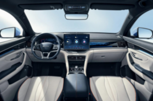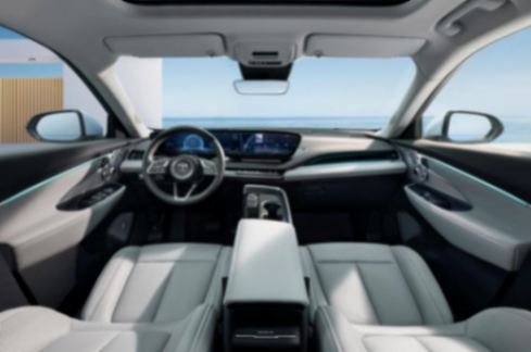 別克E5完成了重心偏轉打造,并實現了上下裝飾板的分層、一體式液晶屏貫穿,中控臺會帶有刻度按鍵,會比較適合盲操作;另外,觸控屏下方也布局了少量觸控,這能優化座艙的數字化程度。