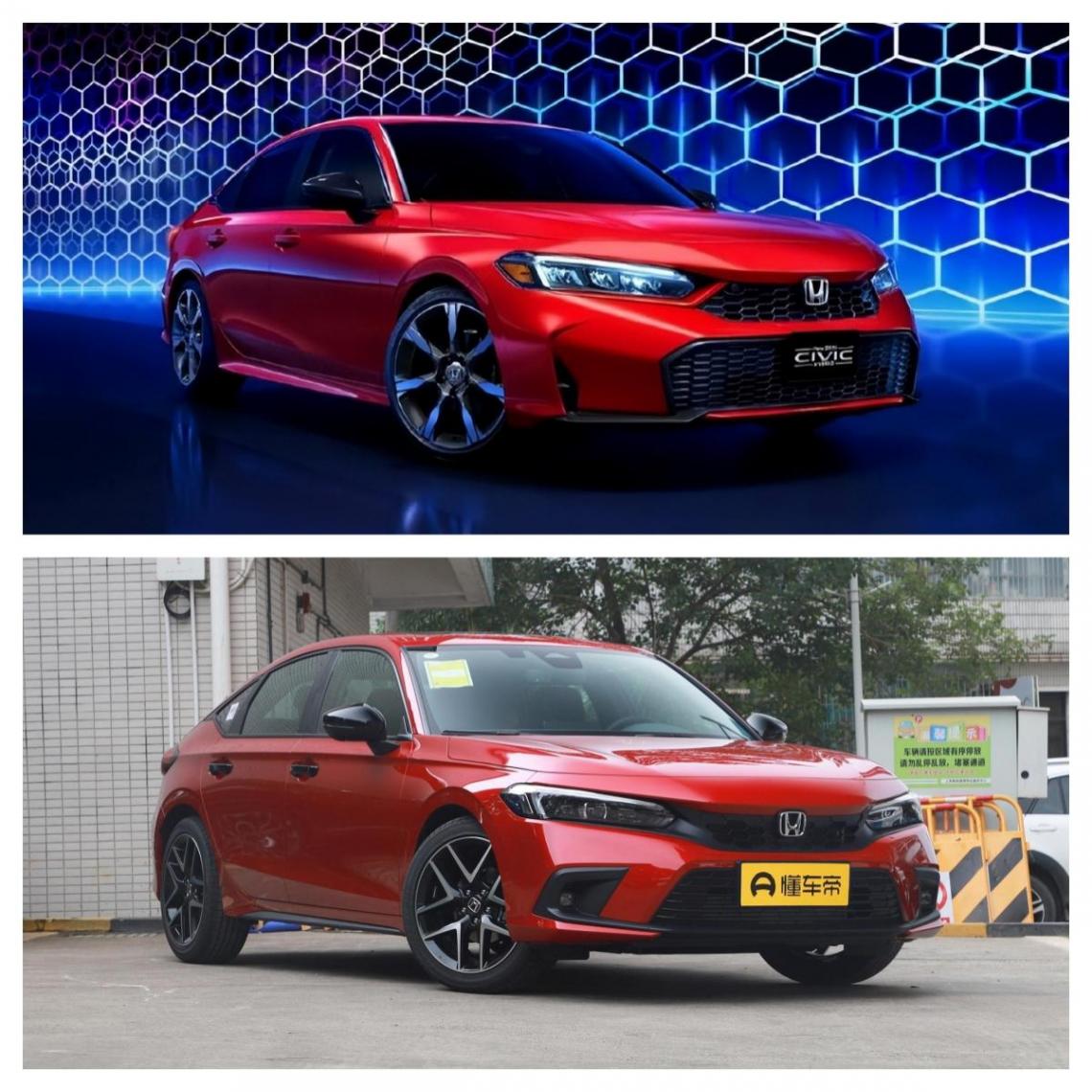 圖片上的兩款車分別是25款海外版的思域(上面)和現款思域(下面)
