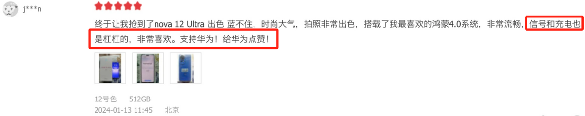 另外還有很多用戶在評價中提到,華為nova 12系列續航表現可靠、充電速度極快。這是因為,華為nova 12系列搭載了4600mAh大電池,能夠輕松滿足持續一整天的用機需求。簡單來講,即使用戶返鄉路途遙遠,需要換乘各種交通工具,但有了華為nova 12系列的長續航作為保障,完全不用擔心手機電量不夠用。