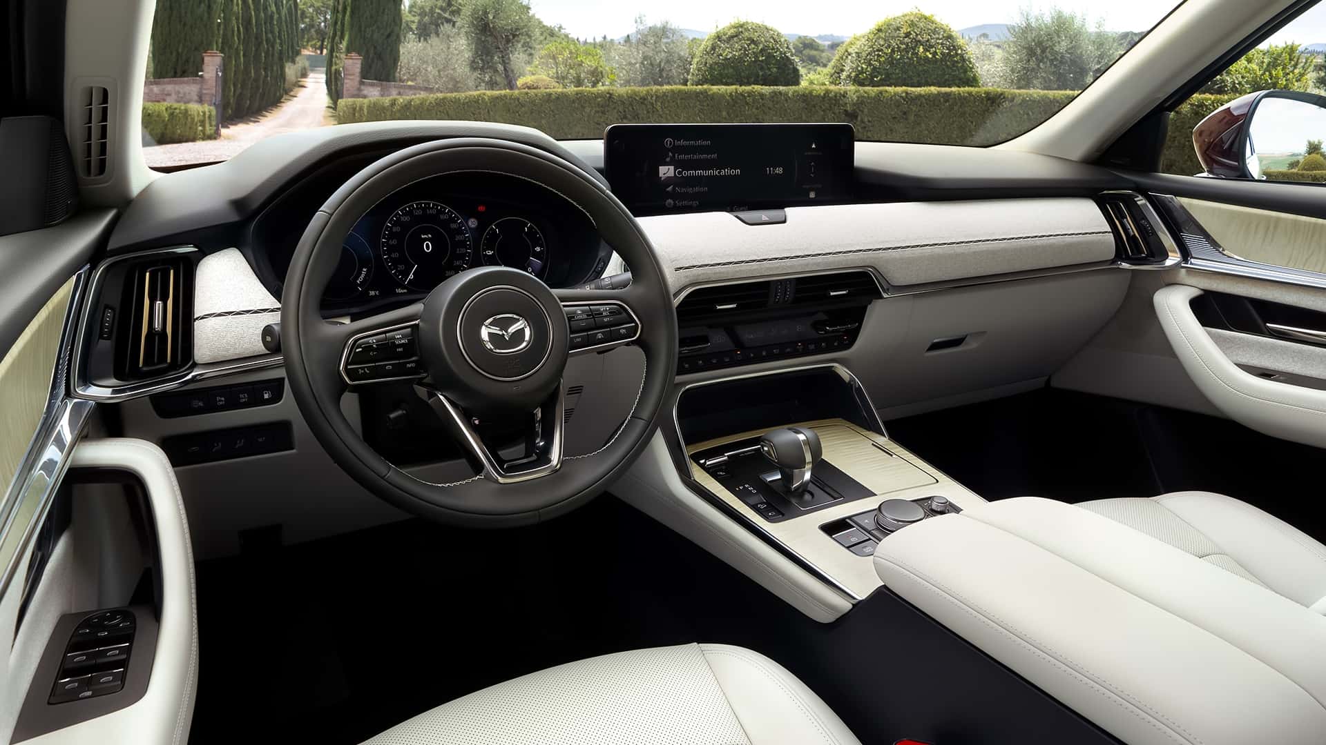 內(nèi)飾方面同樣是最新的家族化設(shè)計(jì)風(fēng)格,提供有三幅式多功能方向盤、液晶儀表盤、懸浮式中控屏以及電子檔把,雖然整體布局還是老樣子,但相比馬自達(dá)以往的車型來(lái)講科技感提升是比較明顯的。