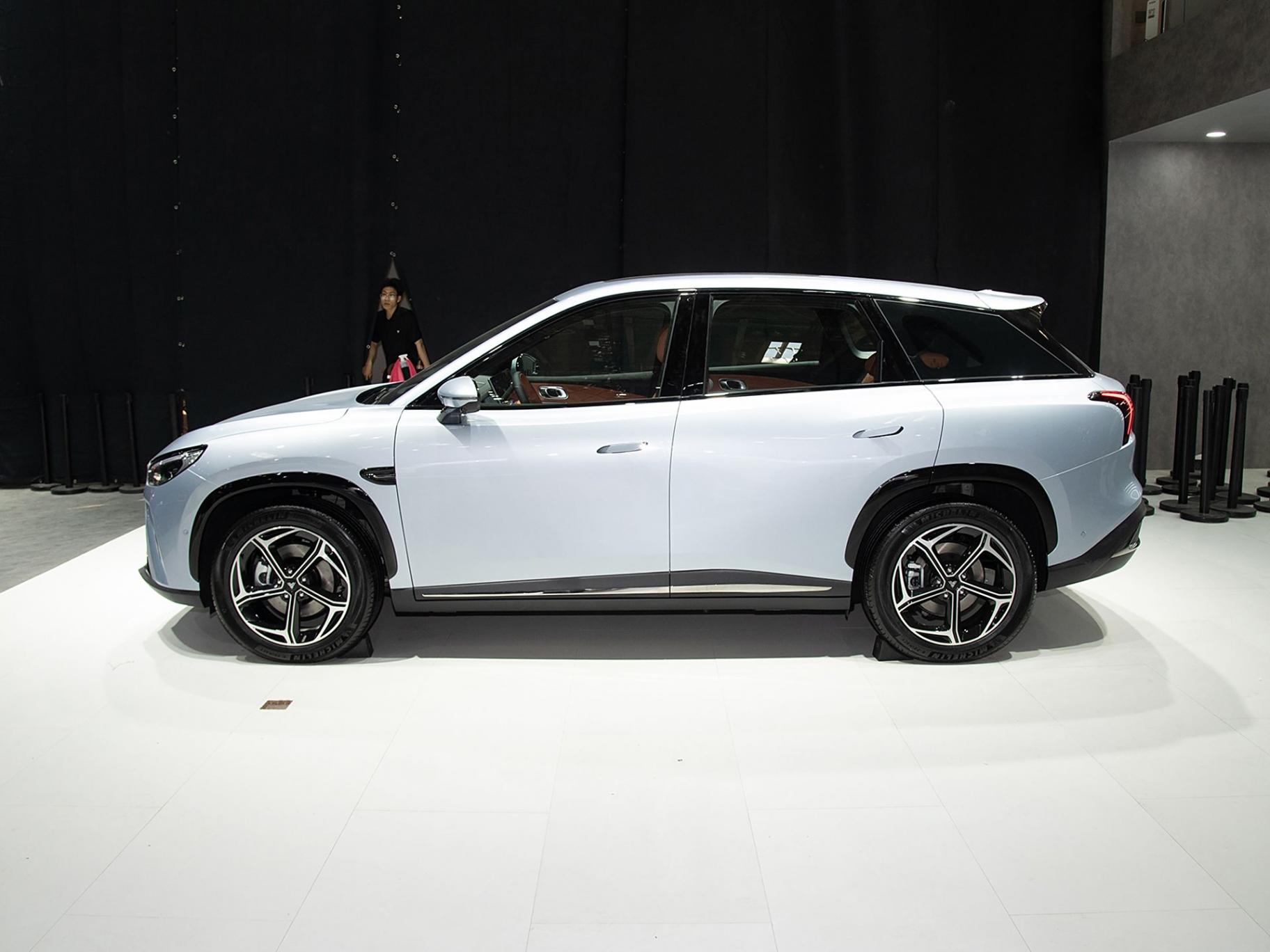 純電動版車型在外形方面和增程版車型相比并無明顯區別,前臉采用的是封閉式格柵設計,風格比較簡潔;大燈組采用了熏黑處理,內部集成有脈沖式日行燈,風格顯得比較銳利。前艙蓋兩側設計有多條隆起的筋線,對于力量感起到了出色的點綴作用。