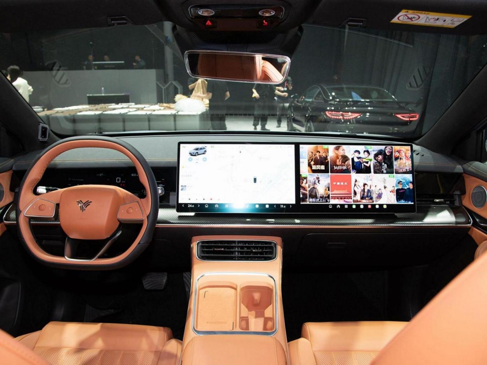 內飾方面,整體布局同樣沿用了燃油版車型的設計風格,提供有三幅式平底多功能方向盤、全液晶儀表盤、副駕/中控雙聯屏以及電子檔把,整體有著比較強的科技感,中控臺的層次感營造的也比較到位。