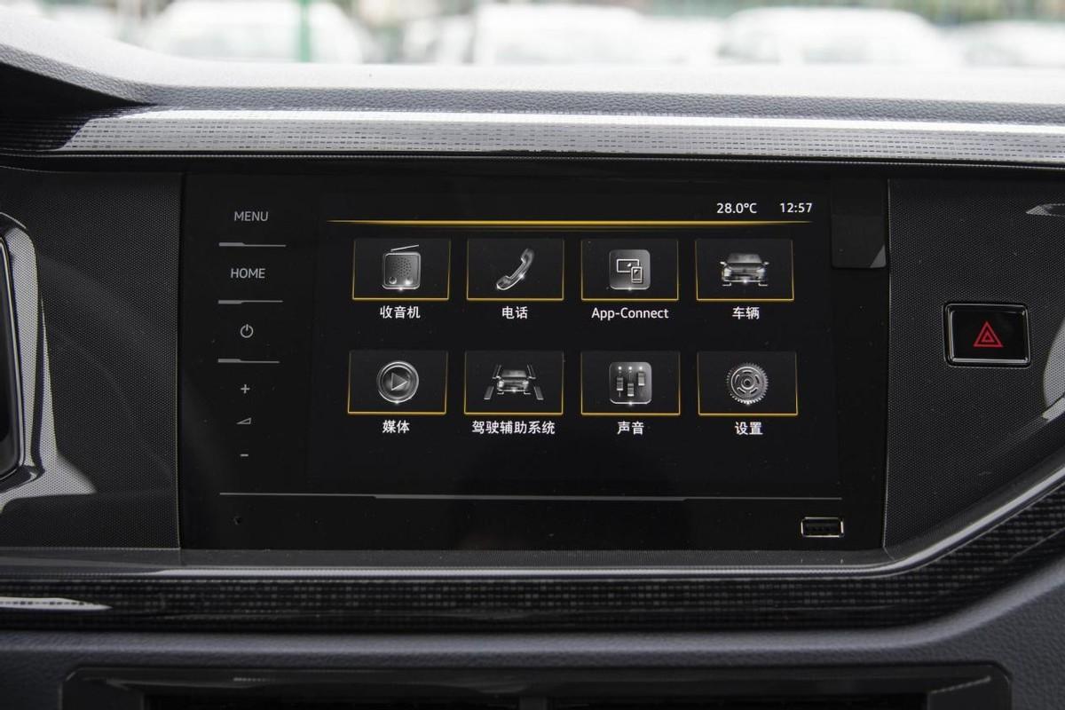車內采用不對稱式布局,從中控屏幕部分開始,連帶下層物理旋鈕一并朝向駕駛位傾斜,控件環繞的駕駛感稍有加強。兩塊8英寸全液晶屏幕足夠行車觀察信息或觸屏使用,只是后方的手剎擋桿有些搶眼,此類老式設計在新款車型中非常少見,為了平衡售價降低,還是出現了部分內容的降配。