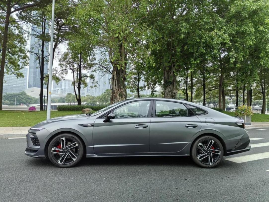 顏值層面,第十一代索納塔采用了全球ONE MODEL的統(tǒng)一設(shè)計,星際戰(zhàn)艦的前臉設(shè)計還是很時尚很科幻,真的很有沖擊感,低趴的姿態(tài),立體的腰線,溜背車身,19寸的輪轂,鴨尾造型,雙邊四出的排氣,妥妥的戰(zhàn)斗姿態(tài),這一系列的運動元素瞬間把“戰(zhàn)斗”氣息拉滿,全新汲取現(xiàn)代汽車N的賽道設(shè)計元素,匹配源自賽車的套件,在呈現(xiàn)賽車般的動感形象。