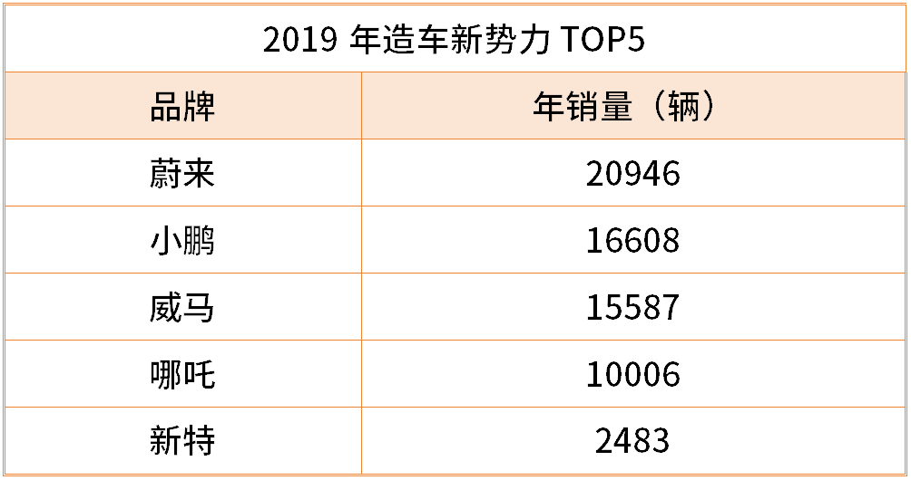 2019年是新能源汽車的拐點,彼時受補貼政策大幅退坡的影響,國內新能汽汽車全年累銷僅93.8萬輛,同比下滑1.5%,暢銷車型大都以價格低廉的微型或者小型電動車為主,比如北汽EU系列、寶駿新能源等、歐拉R1等,以當時的眼光來看,蔚來、小鵬、哪吒絕對屬于新勢力中的“黑馬”。