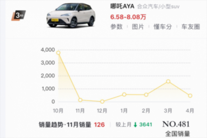 高端上不去,低價也不靈,7萬塊的哪吒AYA除了剛上市那會兒月銷還有3000臺以上,絕大部分月銷量就只有幾百輛,最差的一個月只賣了8臺。看到這個數字,我都替它忿忿不平。