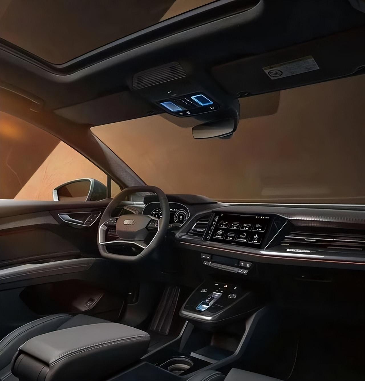 進(jìn)入汽車內(nèi)飾部分,奧迪Q4 e-tron冠軍紀(jì)念版給人的第一印象是“簡(jiǎn)約”,其實(shí)很少有同級(jí)別的純電汽車會(huì)使用“簡(jiǎn)約”的設(shè)計(jì)方式。車內(nèi)采用了黑色為主的配色方案,大面積Laedana環(huán)??萍计じ锏匿侁?,火山灰高級(jí)實(shí)木裝飾面板,精致的手工縫線工藝,也營(yíng)造出奢華的車內(nèi)氛圍。中控臺(tái)配備了雙輻式設(shè)計(jì)的“D”字形方向盤,方向盤本身使用真皮材質(zhì),有著出色的握感,如果有需要也可以選裝方向盤加熱功能??萍几蟹矫?,它配備了10.25 英寸數(shù)字儀表盤、帶聲音反饋的 11.6 英寸 MMI 中央觸控顯示屏以及前風(fēng)擋更大面積的全新AR-HUD,猶如置身于星際戰(zhàn)艦座艙之中。