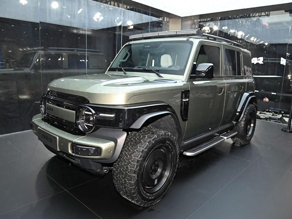 外形方面,iCAR V23采用方盒子越野車風格設計,短前懸短后懸的車身、外拋輪眉、圓形大燈以及向前延伸的前杠,然這款車略帶幾分北京212的味道。說白了,就是整體的車身比例和細節設計都充滿經典越野車味道。