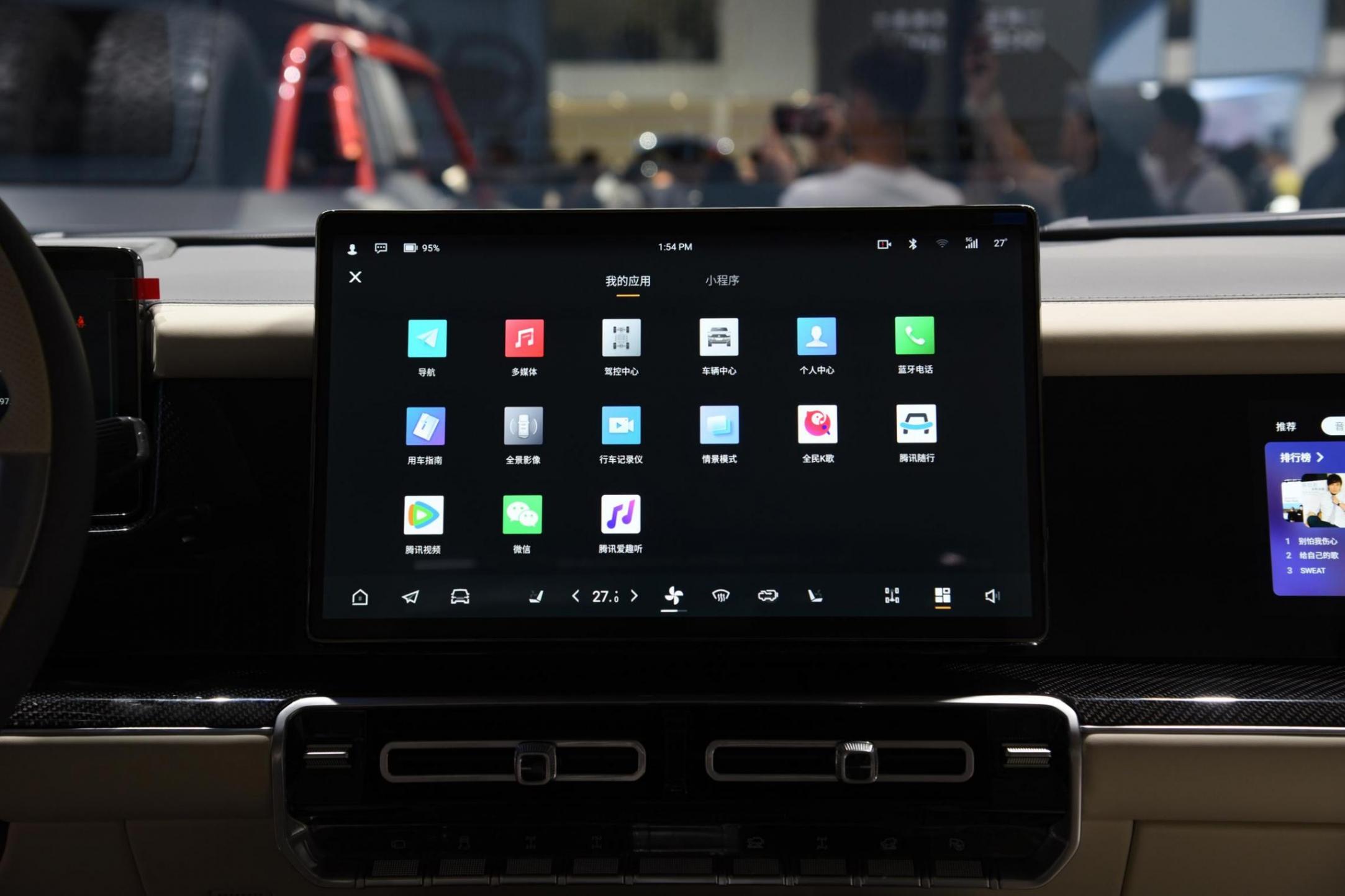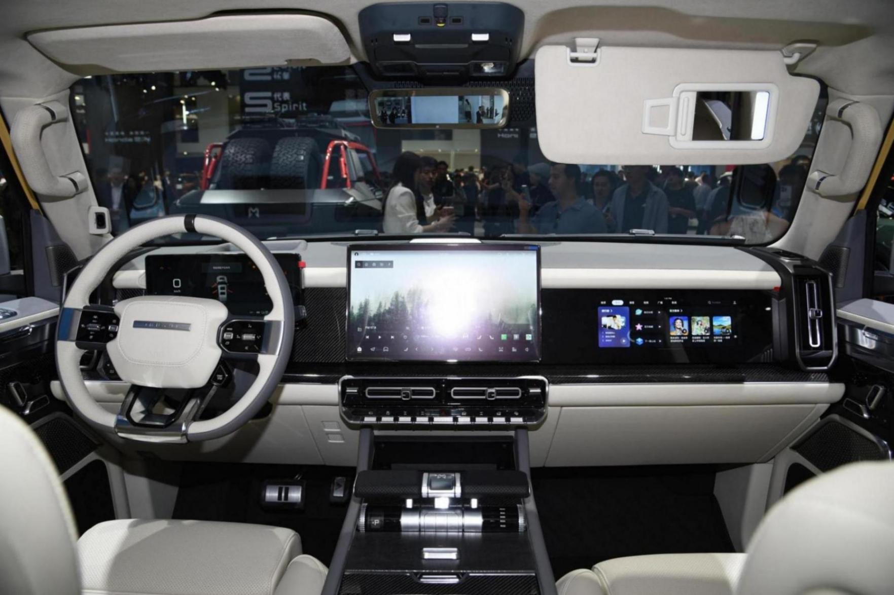 猛士917蛟龍戰甲版在內飾方面,整體設計與普通版車型基本保持一致,中控臺以及門板上的線條都比較平直,看起來比較板正,符合自身的調性。配備12.3英寸全液晶儀表盤、15.6英寸中控屏、12.3英寸副駕駛屏幕、夜視系統、前/后差速鎖、空氣懸架、L2級駕駛輔助、第二排座椅通風/加熱/按摩等配置。