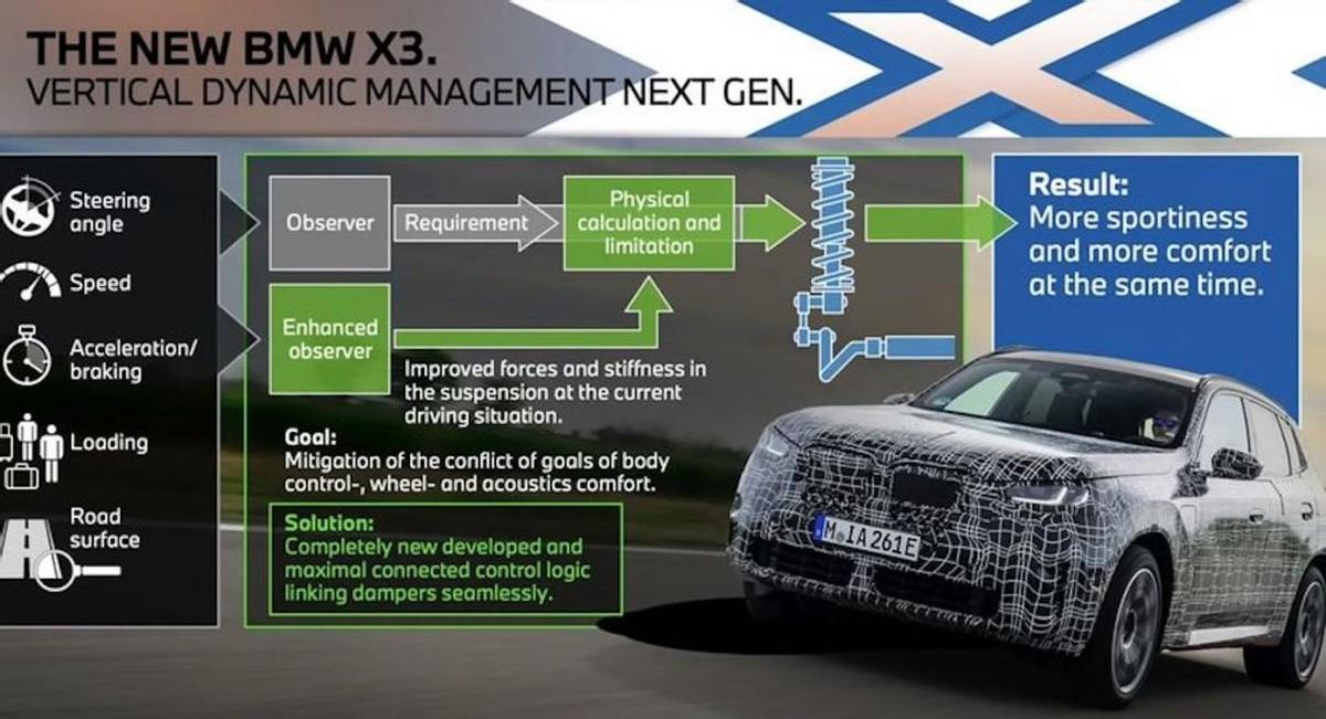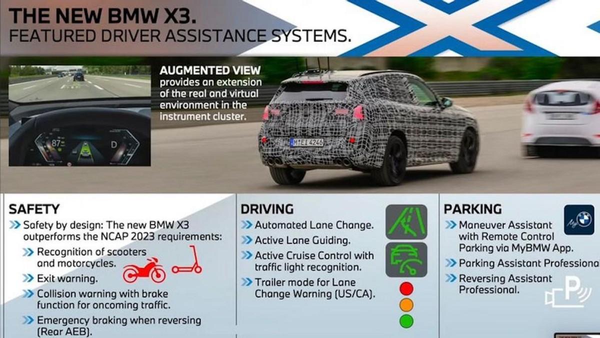內飾方面,寶馬X3將會延續新樣式的運動型方向盤,而前端則會布局一體式曲面屏來支持智能互聯娛樂,而換擋機構中的iDrive多媒體控制器會保持下來以優化綜合功能系統控制,并提供電子撥桿式換擋。此外,寶馬X3還將會搭載全新一代iDrive 9.0系統、布局AR-HUD抬頭顯示系統,并提供17個感知硬件來支持更為高階的智能駕駛輔助系統。