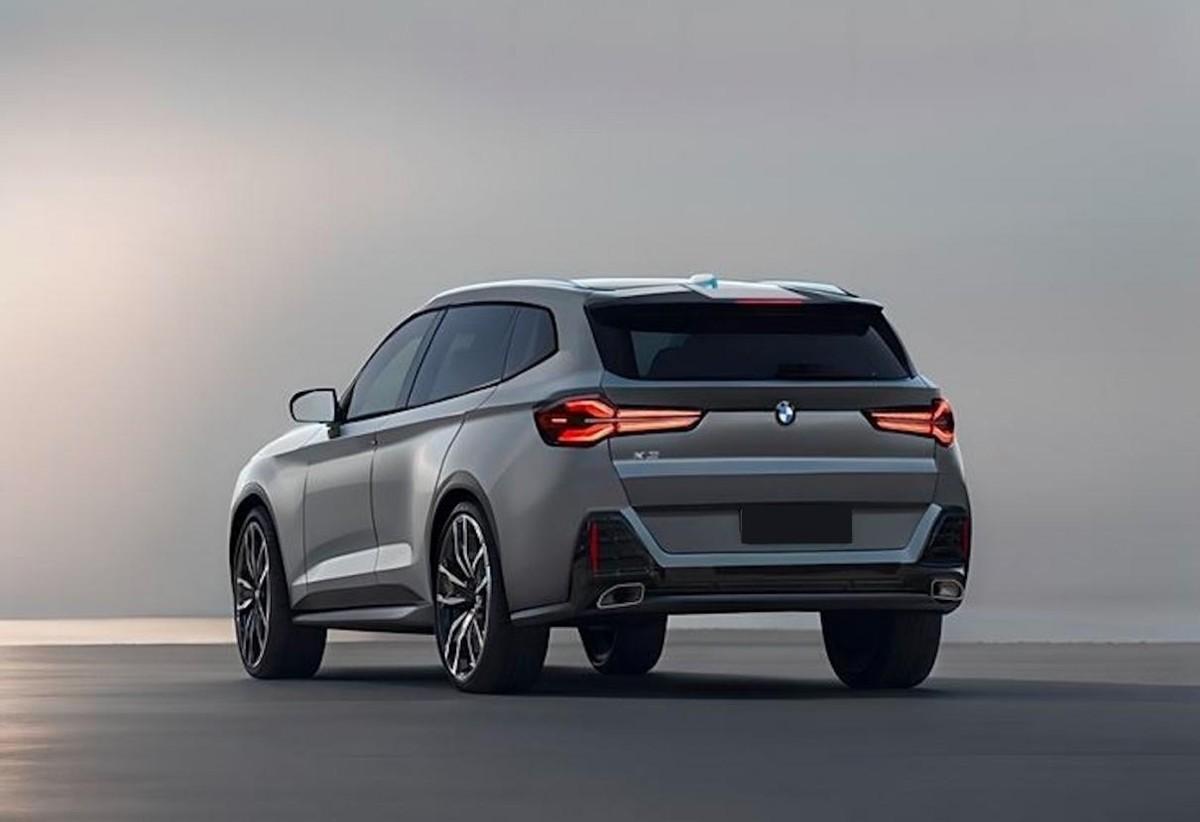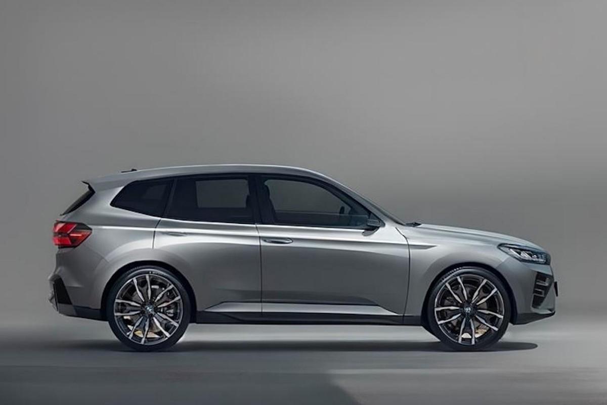 而從側身來看,多層腰線更加肆無忌憚,它不光在靠近車門把手的位置實現了類似“擠壓”的高位貫穿,而且比現款的設計更加鋒利,并且伴隨著車窗下邊緣相似的線條光影、側身側裙上更獨立的梯形收縮包圍等等,寶馬X3算是把這SUV的“運動型”定義給完全展示了出來。細節上我們還發現,雙輻式輪轂的運動鏤空更加強烈,并覆蓋了超大輪轂(最大可達22英寸)與低滾阻的夏季運動輪胎;而布局于A柱下三角區的外后視鏡,則通過扁平設計進一步降低了對于風阻的影響。
