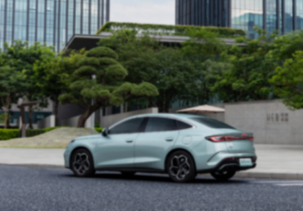 秦L DM-i采用龍顏美學設計理念,前臉大尺寸龍鱗元素格柵十分吸睛,搭配簡潔利落的分體式大燈,展現出強烈的視覺沖擊力;車頭中間鑲嵌的“秦”字LOGO,進一步提升了車輛的辨識度;新車線條流暢柔和,尾燈兩側別具一格的造型設計,為整車平添一抹優雅氣息。