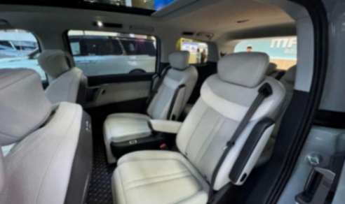 座椅方面,車內7座布局為2+2+3,頭兩排空間還算寬敞,第二排座椅為電動調節。以身高1.77米的體驗者為例,第三排的乘坐舒適度沒有前面兩排好,屬于居中水平。還配備獨立的扶手,腿部支撐,空調出風口,頭枕等。此外,第三排座椅靠背可向前折疊放倒來擴展后備廂容積。