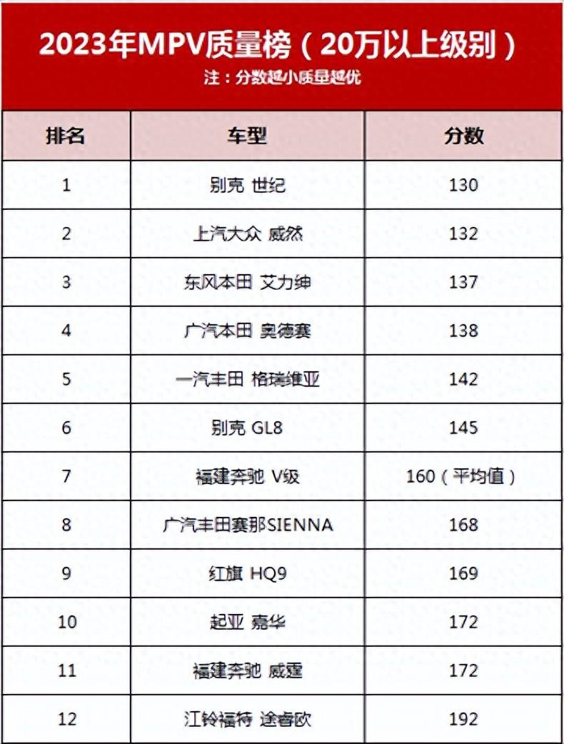 MPV質量排行:別克世紀第一,賽那意外,中企質量值得注意