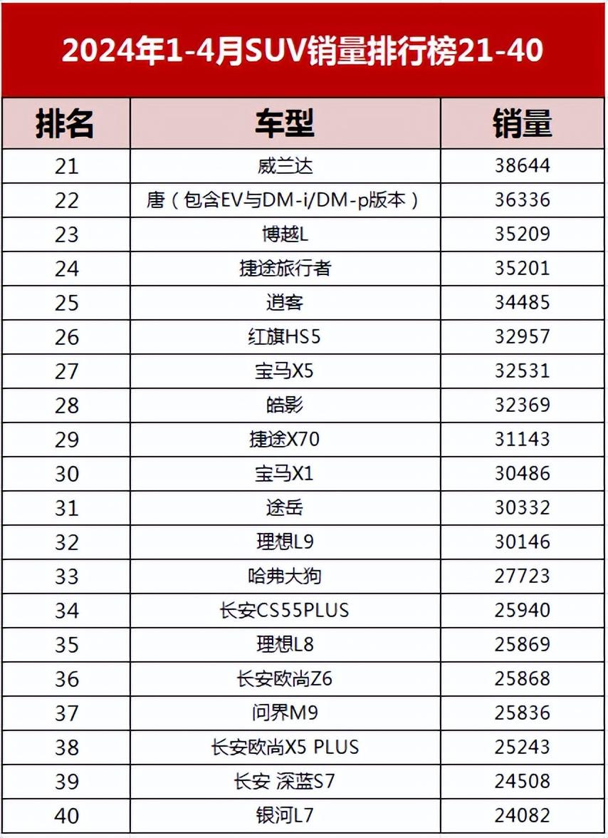 1-4月SUV銷量榜確認,比亞迪降價也賣不過特斯拉,日系排不進前6