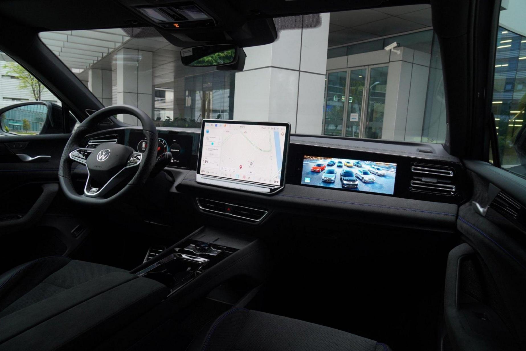 內飾方面,新車整體風格向ID.家族靠攏,中控區域大面積運用類似麂皮的材質覆蓋,并輔以藍色縫線點綴,烘托科技座艙氛圍。配備平底式多功能方向盤、10.3英寸全液晶儀表和15英寸懸浮式中控大屏,比較驚喜的是,比海外版多出一塊11.6英寸副駕娛樂屏。中控屏將搭載最新的車機系統,支持智慧導航、智能語音、騰訊生態、智享娛樂、場景引擎、Apple CarPlay、百度CarLife、華為HiCar。取消了傳統手檔桿,采用懷擋設計,原本的區域設計了一個水晶旋鈕,視覺上更加精致。