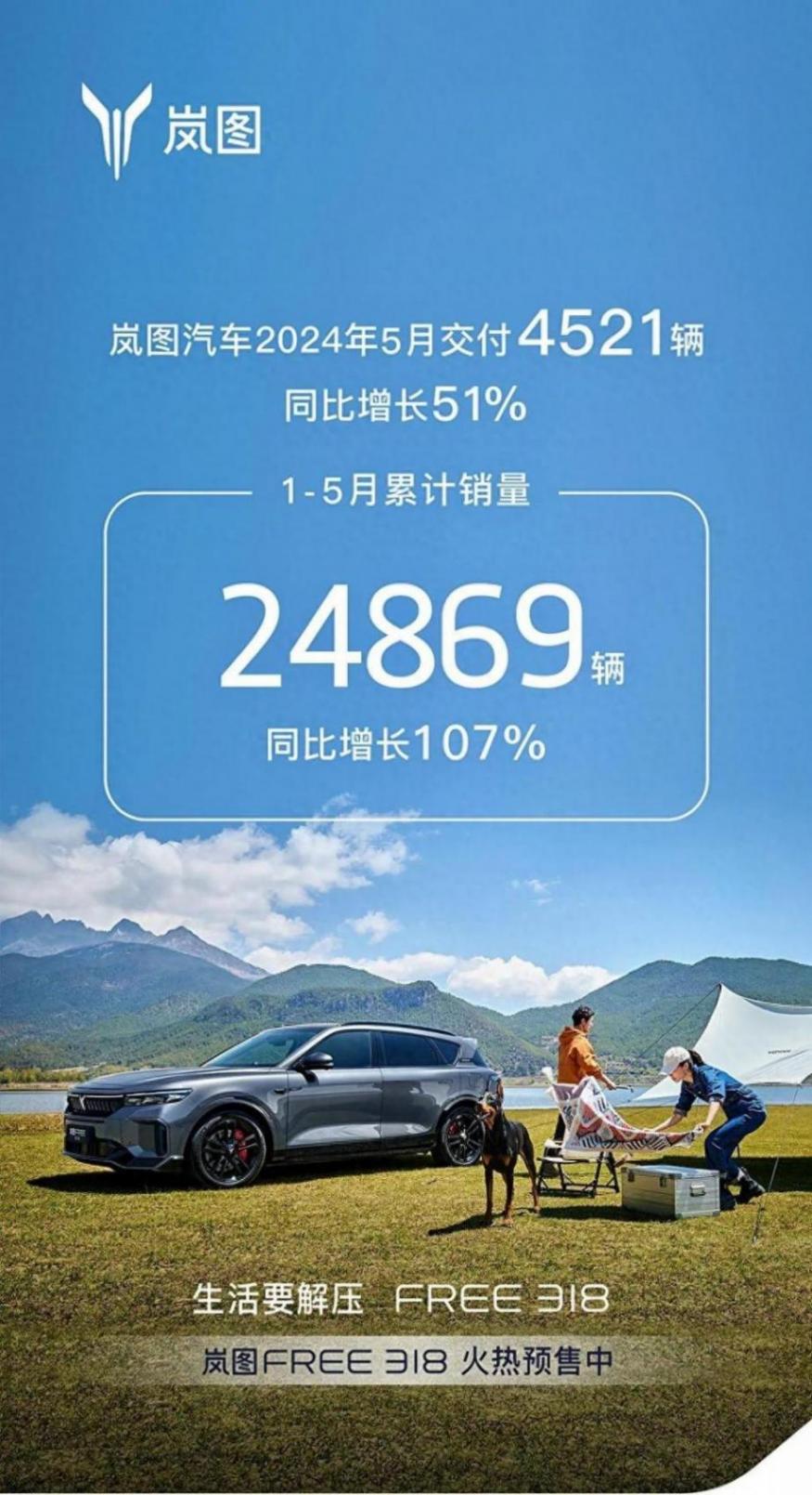 同比方面依舊保持著51%的高增長,有不錯的水平。截至今年前5個月,嵐圖累計銷量24869輛,同比增長107%,保持著旺盛的需求。而就在前兩天,嵐圖Free 318車型剛剛開啟預定,雖然沒有公布價格,但由于采用了單電機未來的銷售區間肯定會有所下調,以進一步追求走量。