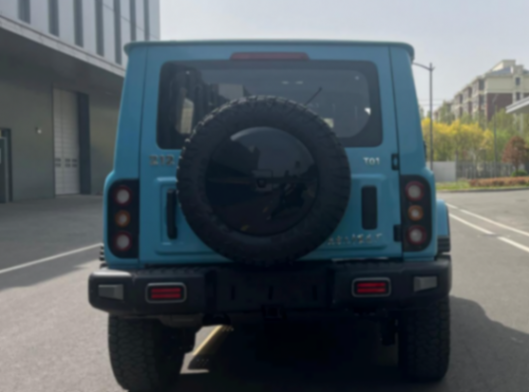 尺寸加大之后本身就對外觀氣場很有幫助,尤其車身側面看大氣了許多,不再是原來那種小家子氣的感覺。而且這款車依然保持了方盒子經典元素,再加上車頭前臉的復古圓形大燈以及三道橫紋進氣中網,經典的元素也沒有拋棄。尾部視角是有側開尾門以及全尺寸越野小書包備胎的,乍一看還真有點奔馳大G的感覺。
