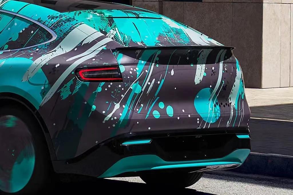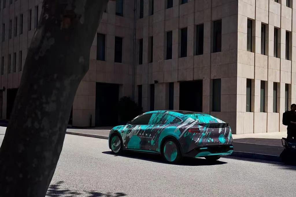 側(cè)面通過溜背式造型令整車看起來頗顯年輕運動,車身還加入有大量不同型面的線條,有助于提升立體效果。車頂配有瞭望塔式激光雷達,我們猜測應(yīng)該是和問界M9相同的192線高精激光雷達,這也預(yù)示著新車或?qū)⒋钶d華為最新的ADS 3.0高階智駕系統(tǒng)。尾部的設(shè)計比較簡潔,向下彎折的貫穿式尾燈我們已經(jīng)在鴻蒙智行旗下多款車型上見過,點亮以后擁有不錯的辨識度。尾燈組上方還加入了一體式擾流板,底部同樣是梯形后包圍,與前臉相呼應(yīng)。