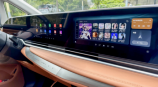 進入車內,配備了官名為“卷展云舒”的三聯屏,包括10.25英寸的液晶儀表和雙12.3英寸的中控屏和副駕娛樂屏。車機集成8155芯片,搭載斑馬智能系統,支持高效的語音識別和智能控制,提供B站、網易云音樂等第三方APP。