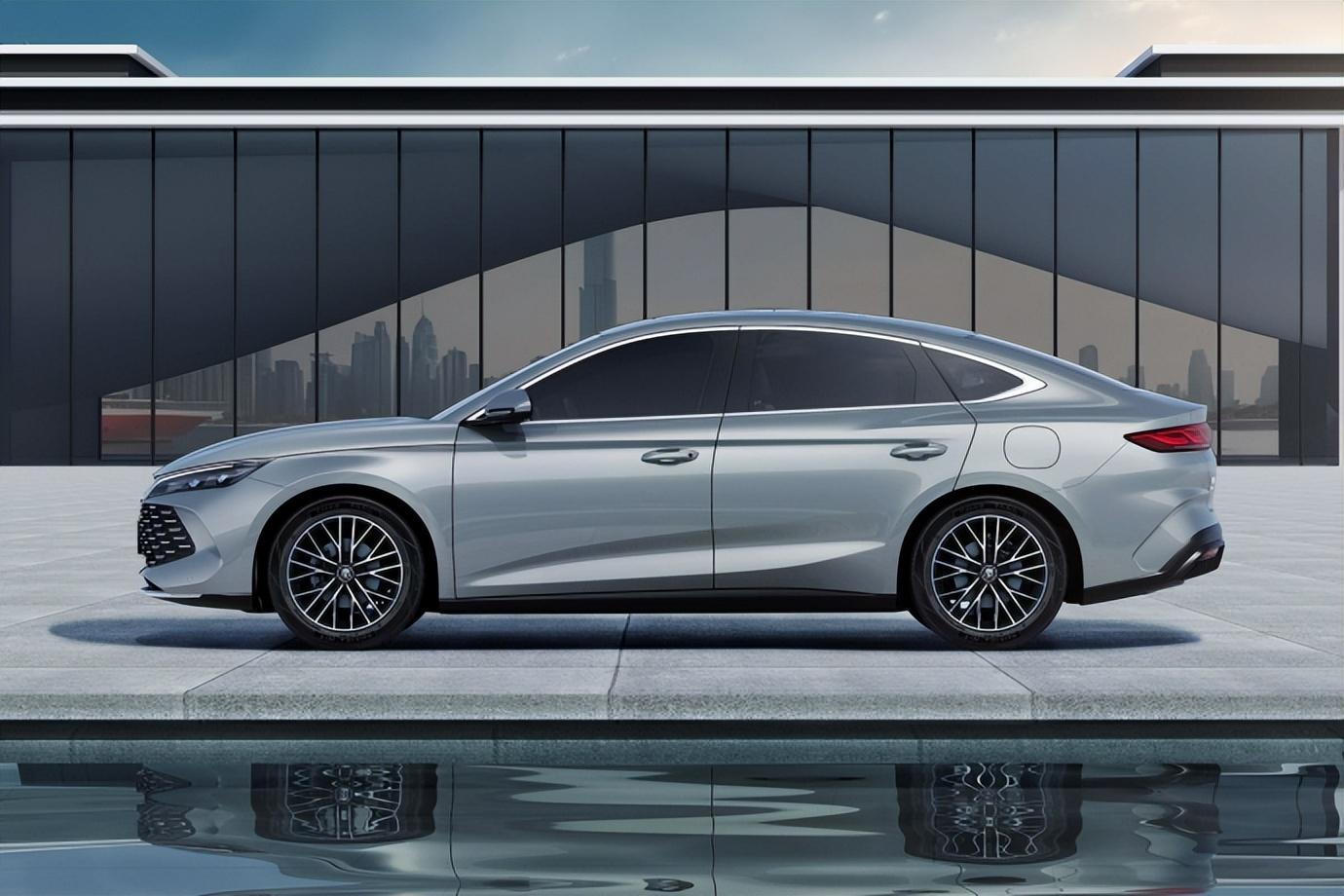 車身側面,秦L的雙腰線與下方的內凹式筋線相配,并采用溜背式線條。