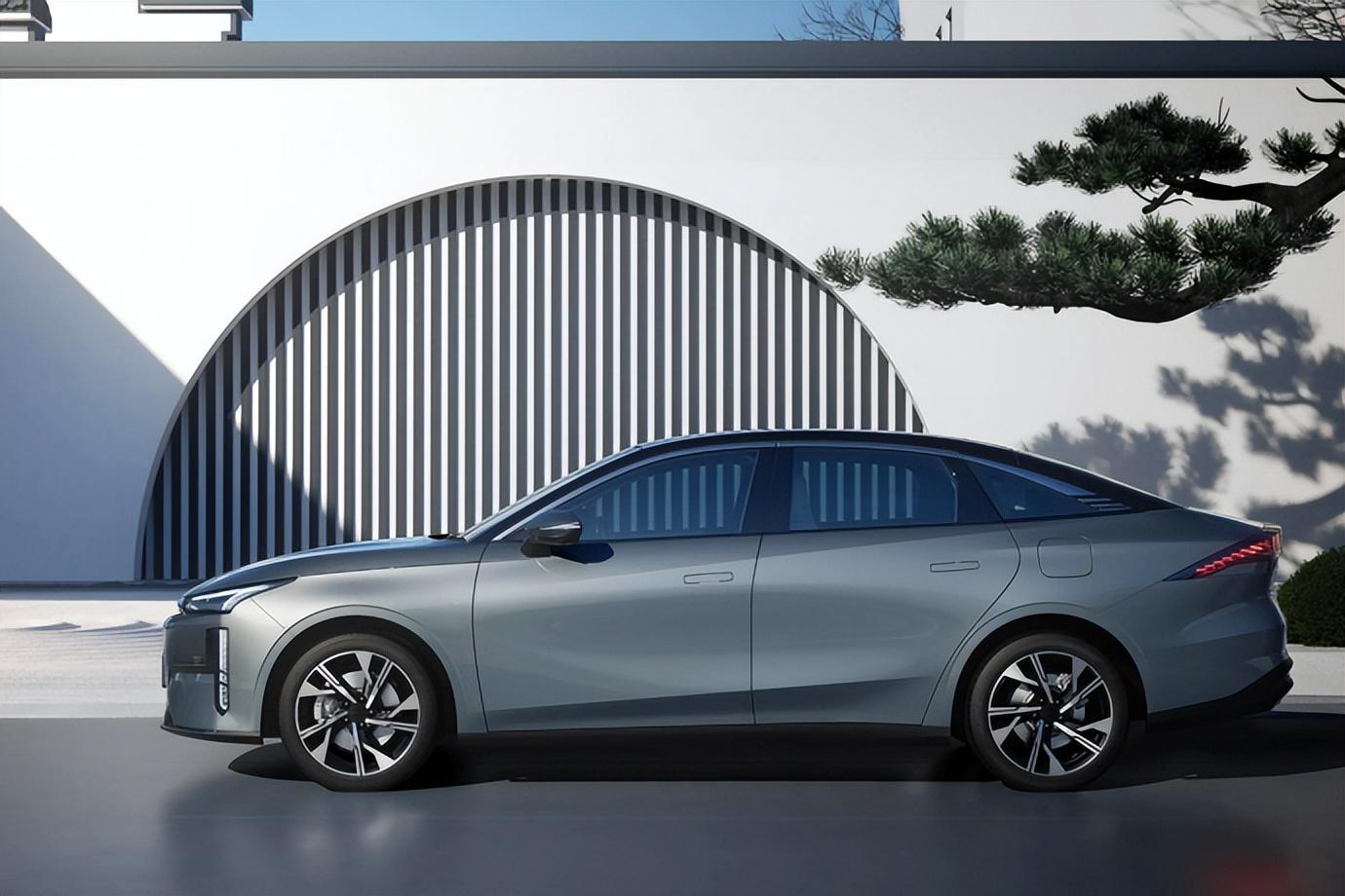 銀河L6腰線上揚。配備隱藏式門把手和低風阻輪圈。同樣采用溜背式線條設計。