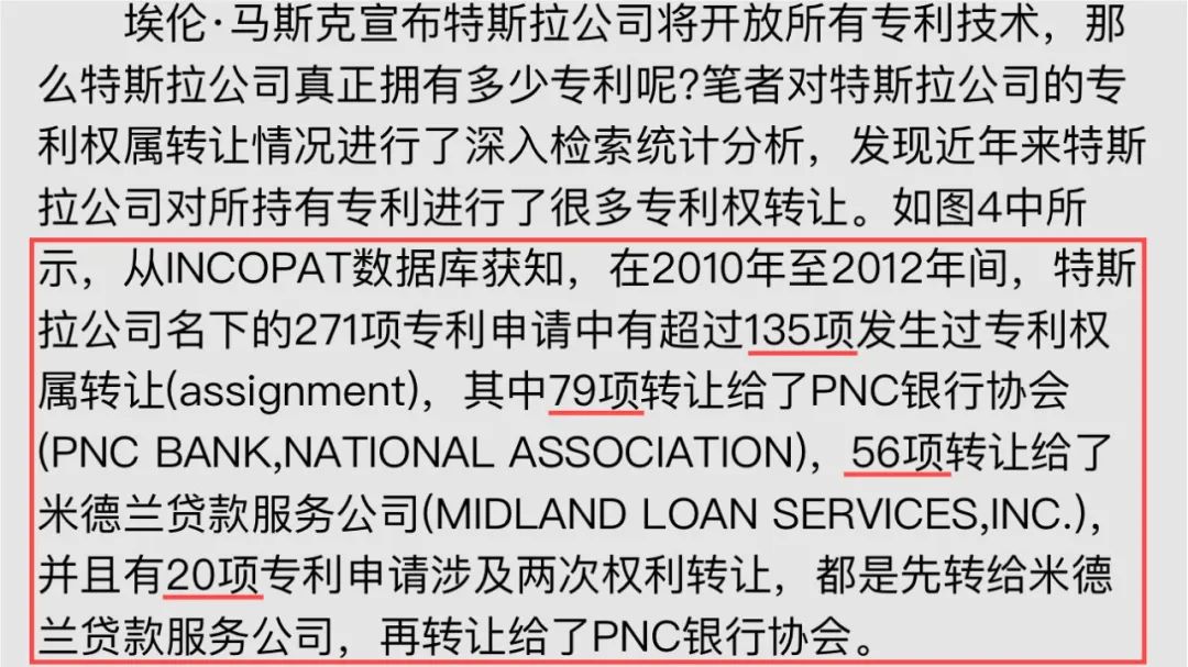 2010年-2012年期間,特斯拉把79項專利轉讓給了PNC銀行協會,56項轉讓給了米德蘭貸款服務公司。