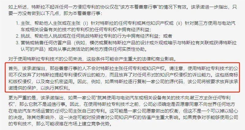 你使用了特斯拉的專利,意味著你放棄了對特斯拉提起專利訴訟的權利。