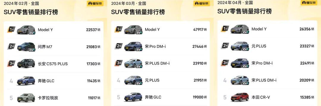 從銷量上來看,Model Y在2、3、4月份都是SUV銷量第1,競爭力還是很強的。