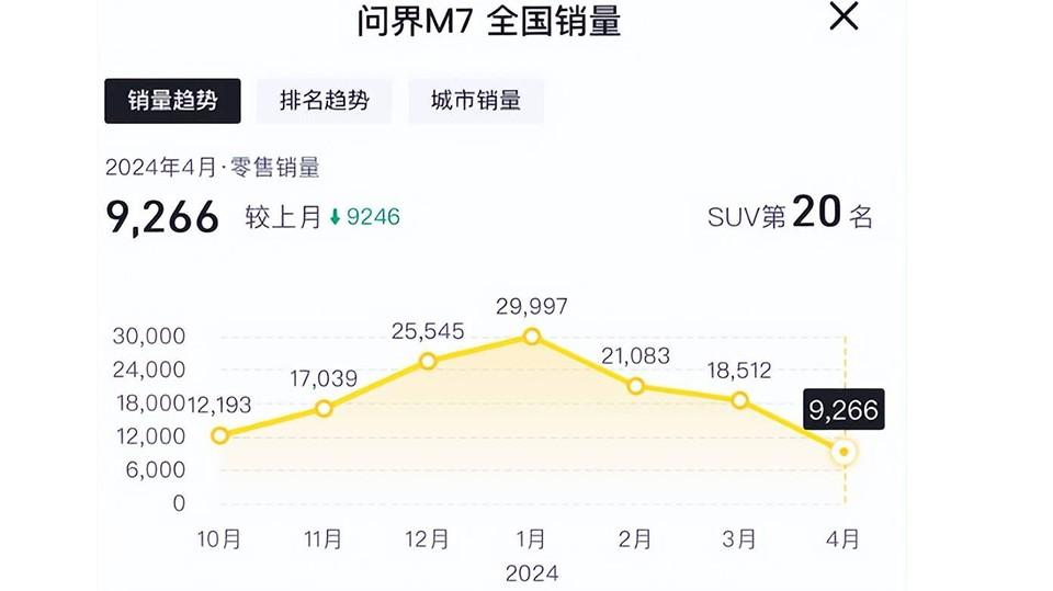 如果以員工單月工資5000元起步計算,1個月的工資支出為1億元。彼時面臨訂單過多,如果不能快速交車就會面臨蔚來ET5、小鵬G6大量退單,口碑砸鍋的產(chǎn)能地獄局面,華為和問界自然是沒得選。而參考到問界M7相關(guān)的一系列銷量走勢,如今的它顯然面對著必須要繼續(xù)輸血的局面。