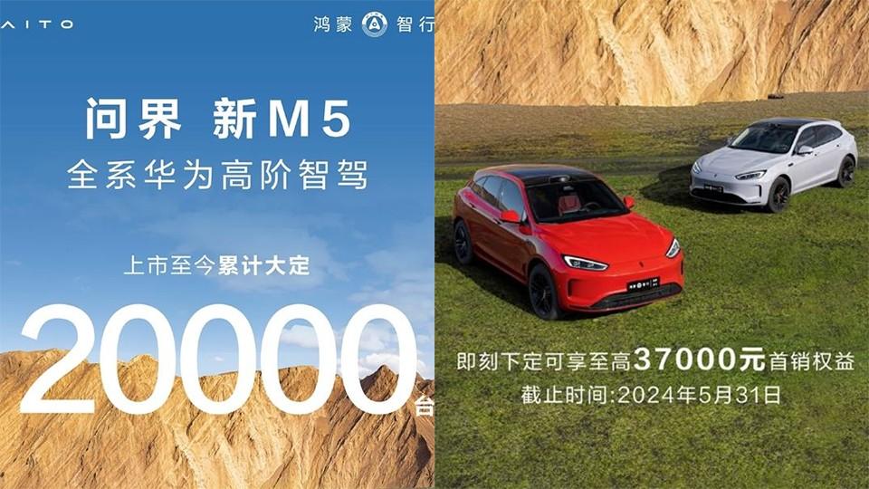 雖然,問界的5月銷量沒有單獨公布,但這可以拆解。問界M9的5月交付量為15873輛,賽力斯為34130輛,也就是說藍(lán)電E5等賽力斯自己的車即便銷量為0,問界M7也拿不到2萬輛的數(shù)字。因為新問界M5在5月15日正式開啟交付,官方銷量成績是,72小時大定突破1萬臺,目前大定突破2萬臺。