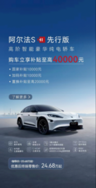 以上L3級(jí)自動(dòng)駕駛的先進(jìn)技術(shù)其實(shí)都“有跡可循”,“天花板級(jí)高階智駕”無需等待,當(dāng)下便可享受,4月剛剛上市的阿爾法S先行版PRO便擁有同等高規(guī)格的配置,再加上HUAWEI ADS2.0高階智駕方案,做到“全國(guó)都能開,有路就能開”。