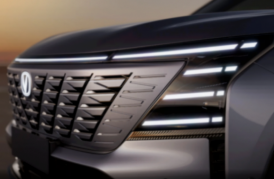 在外觀設(shè)計方面延續(xù)了此前CS75 PLUS整體的輪廓,但造型更加科幻。中網(wǎng)為無邊界的設(shè)計,從官圖來看中間的車標(biāo)還支持點亮了,下方梯形的進(jìn)氣口,貫穿式的LED日間行車燈更加科幻,兩側(cè)還新增了橫向的燈條點綴。