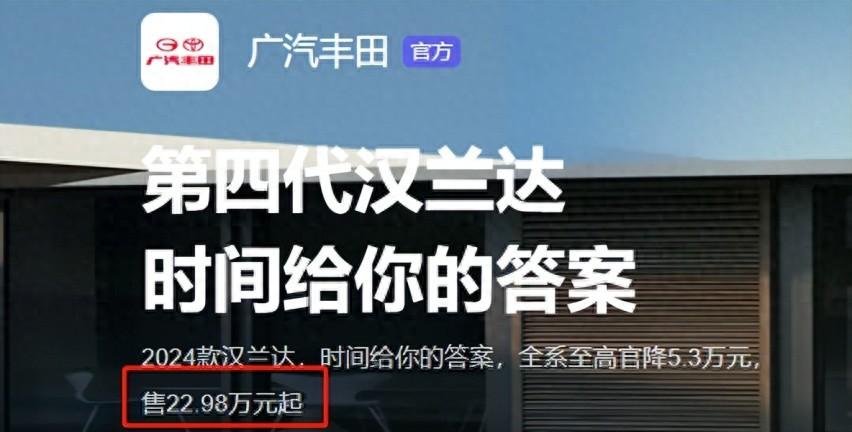 豐田漢蘭達這款車型一直都是30萬左右的中級車標桿,此次24款新車正式迎來上市,價格變得相當親民,廠家指導價為24.98-31.18萬,全系官降最高5.3萬。值得一提的是,廠家還給出了一定的折扣,入門級直接降到了22.98萬元。新車大幅度降價,迅速引起了廣大消費者的興趣。很多地區的新車已經到店,我們一起來進行一番解析。