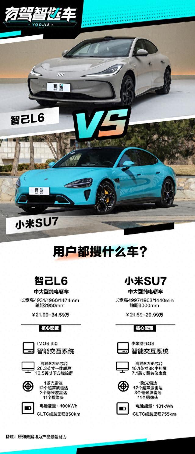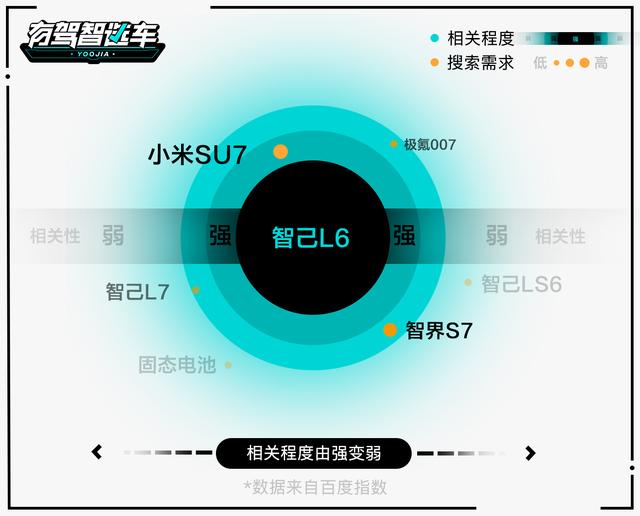 我們以百度海量網民行為數據為基礎,通過百度指數搜索,發現用戶在查找智己L6的前后行為中,確實經常把小米SU7聯系起來,顯示出較強的相關性和搜索頻次,由此我們對二者進行對比分析。