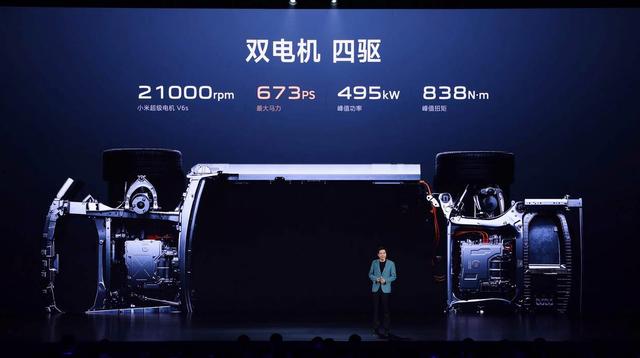 小米SU7雙電機版車型最大功率為495kW,峰值扭矩838N·m,0-100km/h加速時間2.78秒,最高時速210km/h,配備容量為101kWh的寧德時代三元鋰電池,CLTC續航里程為800km。